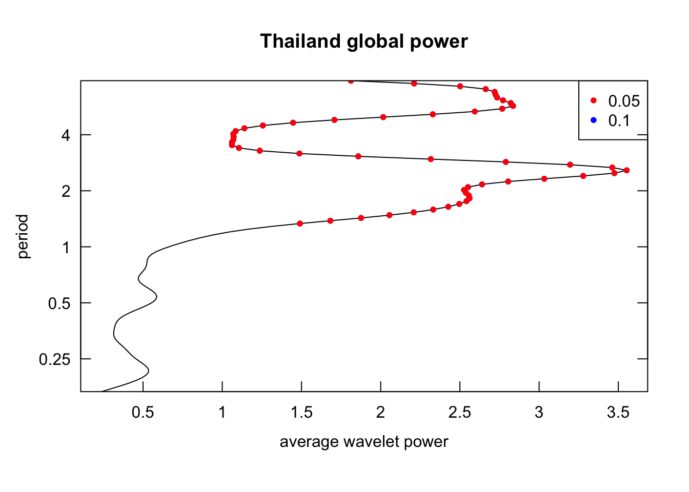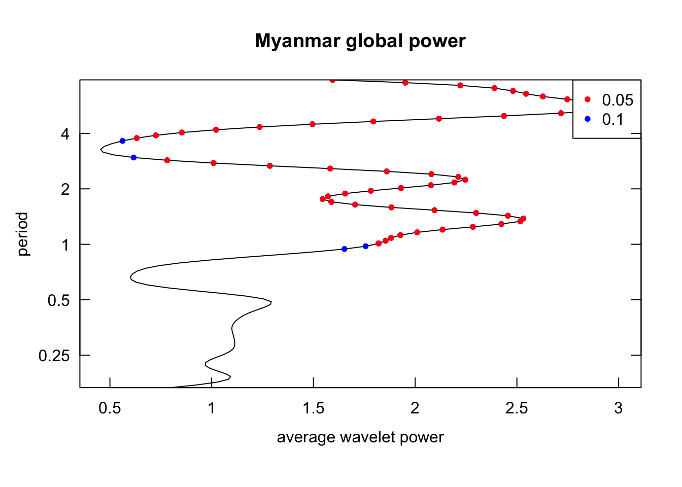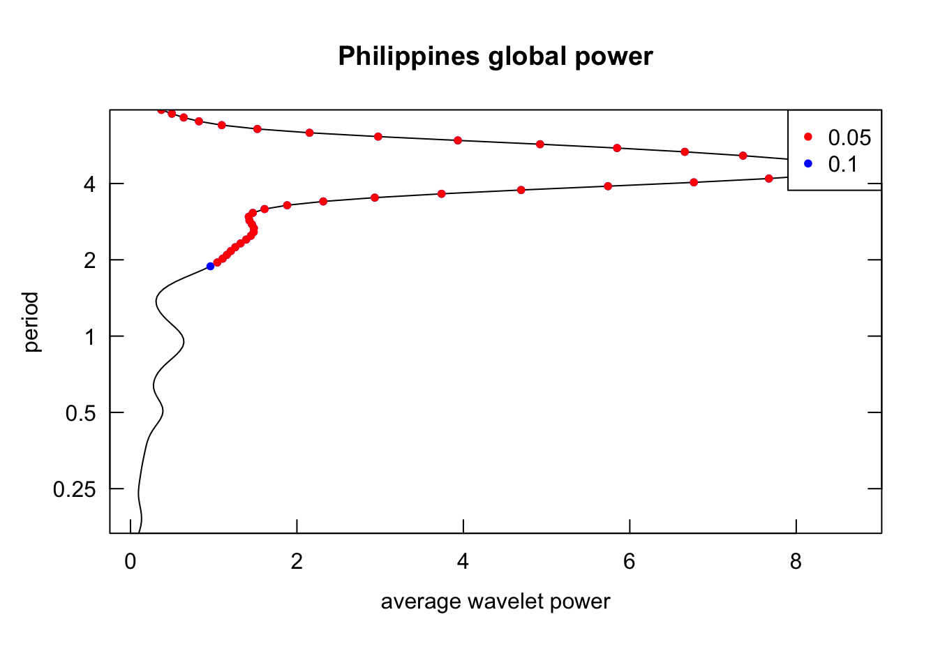 plot_power <-function(wavelets){# return heatmap of power and also global powerimap(wavelets, \(wavelet, country){wt.image( wavelet,main =paste0(country, " power spectrum"),legend.params =list(lab ="Power"),periodlab ="Period(Year)",show.date =TRUE ) spectrum <-recordPlot()wt.avg( wavelet,main =paste0(country, " global power") ) global_power <-recordPlot()list("spectrum"= spectrum,"global_power"= global_power ) })}