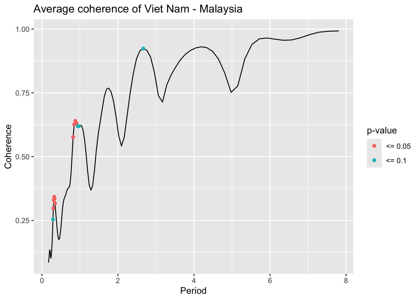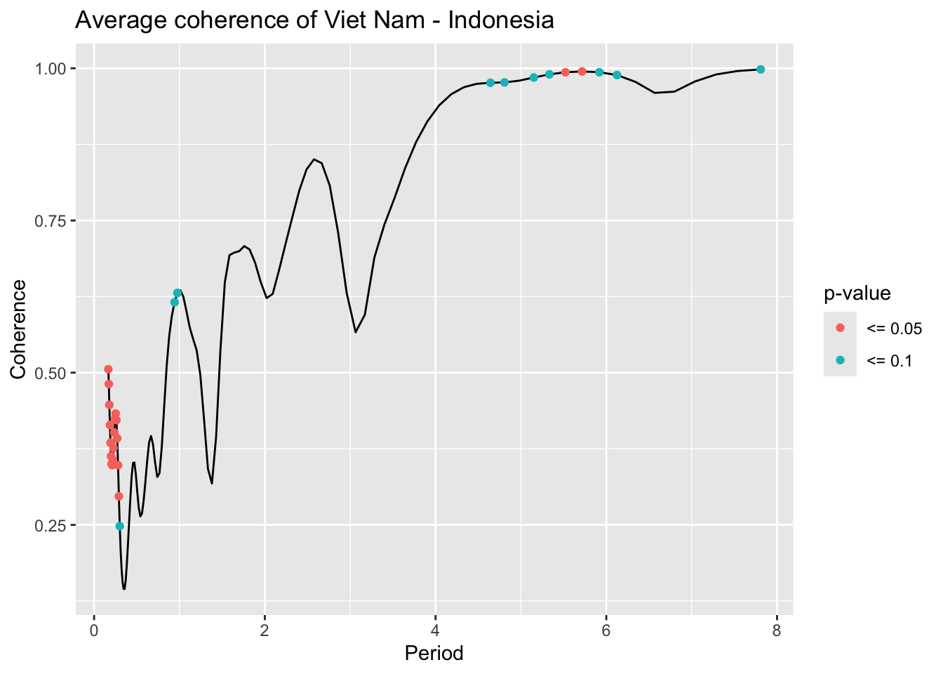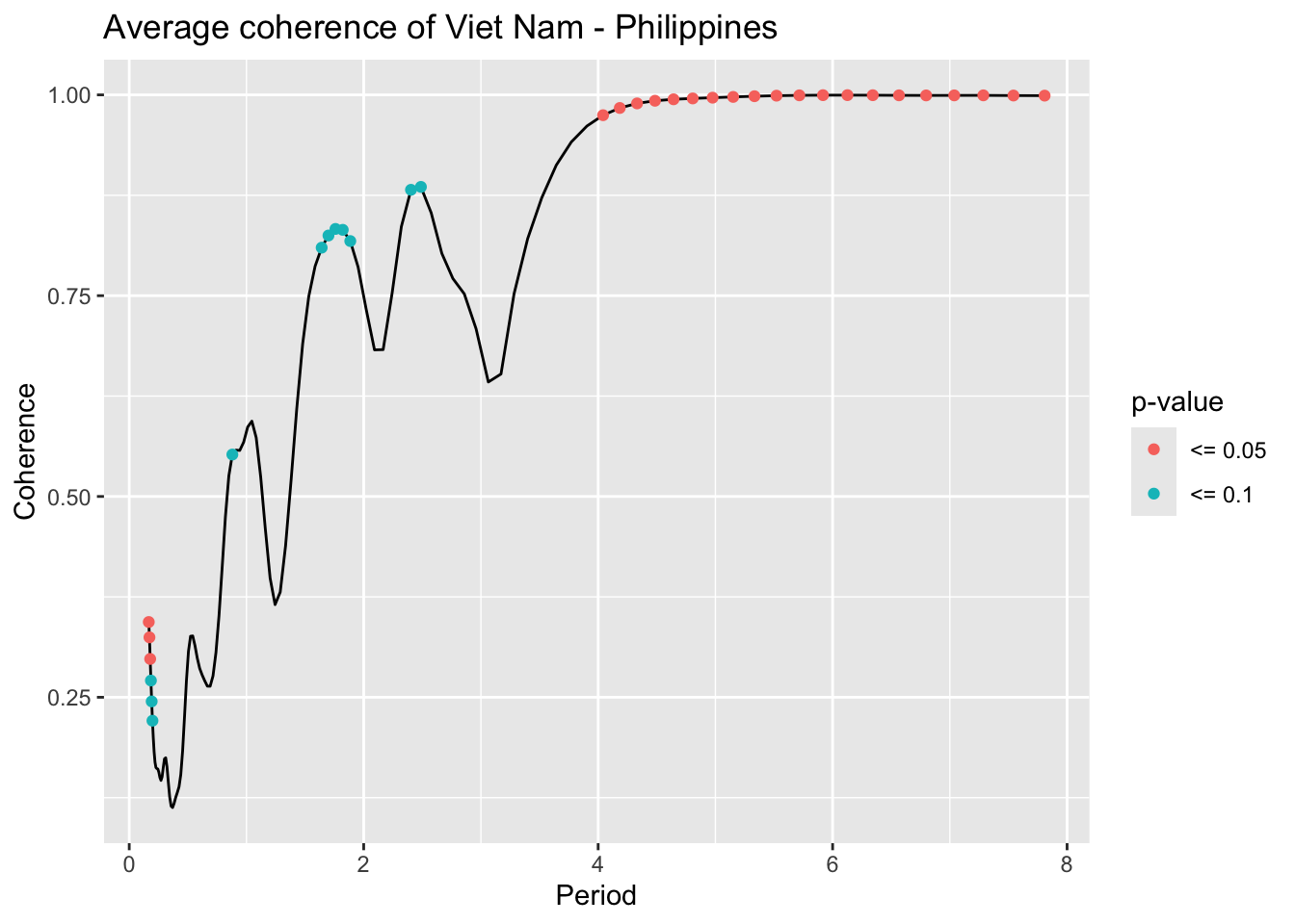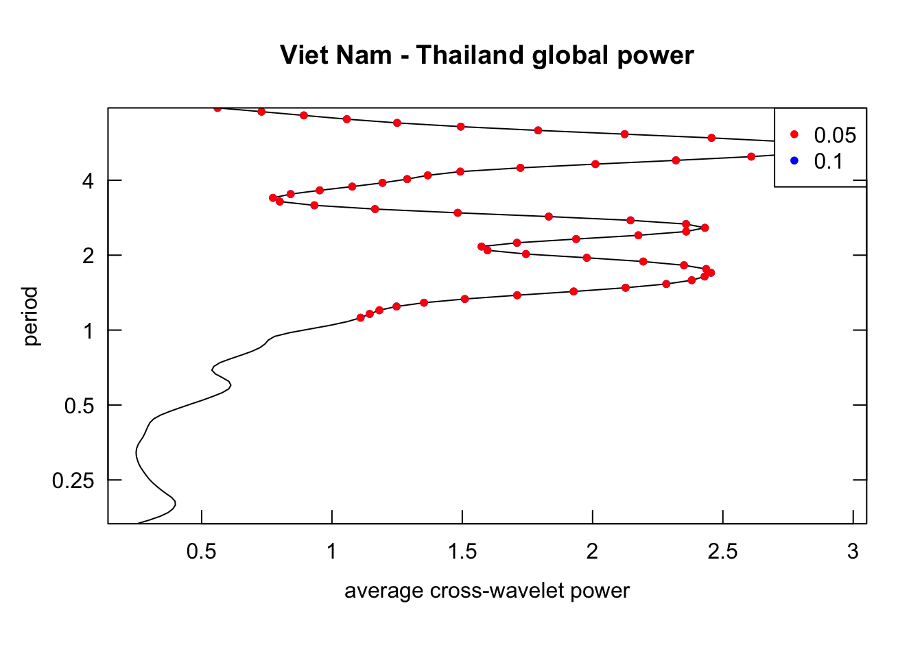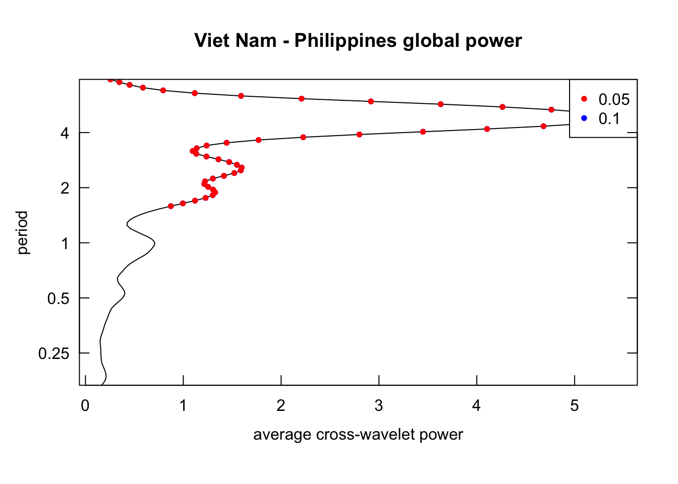 library(janitor)# Function that takes data instead of wavelets# wavelets, period = 5, ref_country = "Viet Nam", constraint = TRUE, diff_to_time = TRUE# when ref_country is not found, generate all unique pairs # when repeated = TRUE, included permutations of pairs intead of combinationsgenerate_biwavelet_analysis <-function(data, ref_country ="Viet Nam",repeated =FALSE,verbose =FALSE){ countries <-unique(data$country)# generate all unique pairs pairs <-if(!repeated) combn(countries, 2, simplify =FALSE) elseexpand.grid(countries, countries) %>%filter(Var1 != Var2) %>%apply(1, \(row){as.character(row)}, simplify =FALSE)# if ref country is provided, keep pairs with the ref_country# also make sure ref country is the first time seriesif (!is.na(ref_country)){ pairs <-keep(pairs, \(p) ref_country %in% p) pairs <-map(pairs, \(p) {if (p[1] == ref_country) p elserev(p) }) } coherence <-map(pairs, \(curr_pair){capture.output( out <- data %>%filter( country %in% curr_pair ) %>%select(country, date, incidence) %>%pivot_wider(names_from = country,values_from = incidence ) %>%as.data.frame() %>%analyze.coherency(my.pair = curr_pair,dt =1/12,lowerPeriod =1/6,upperPeriod =8,verbose = verbose ) ) %>%invisible() out })names(coherence) <-map_chr(pairs, \(pair) paste(pair, collapse =" - ")) coherence}