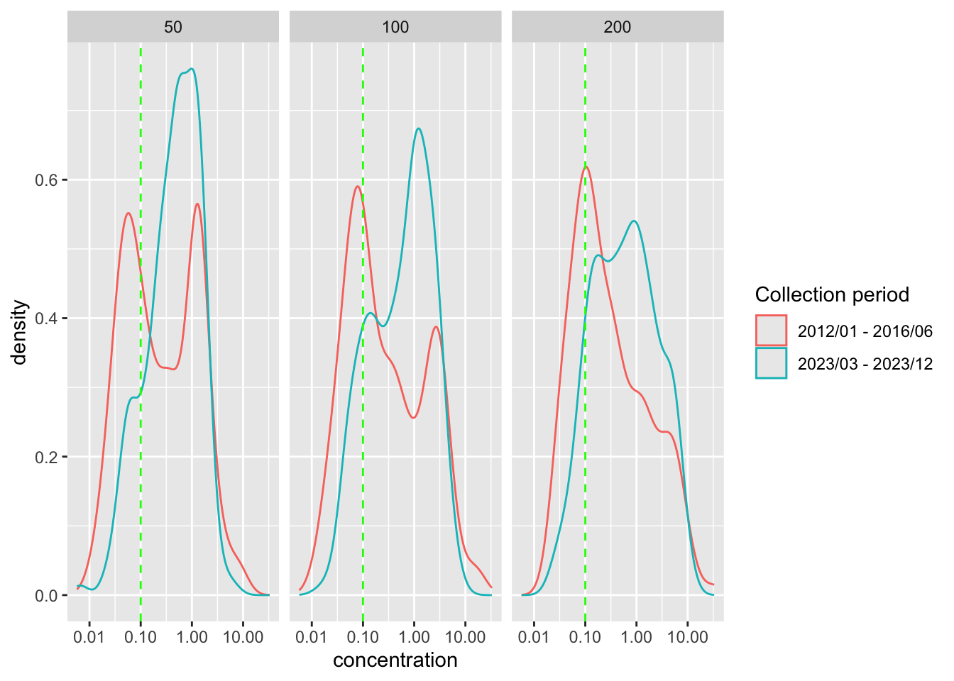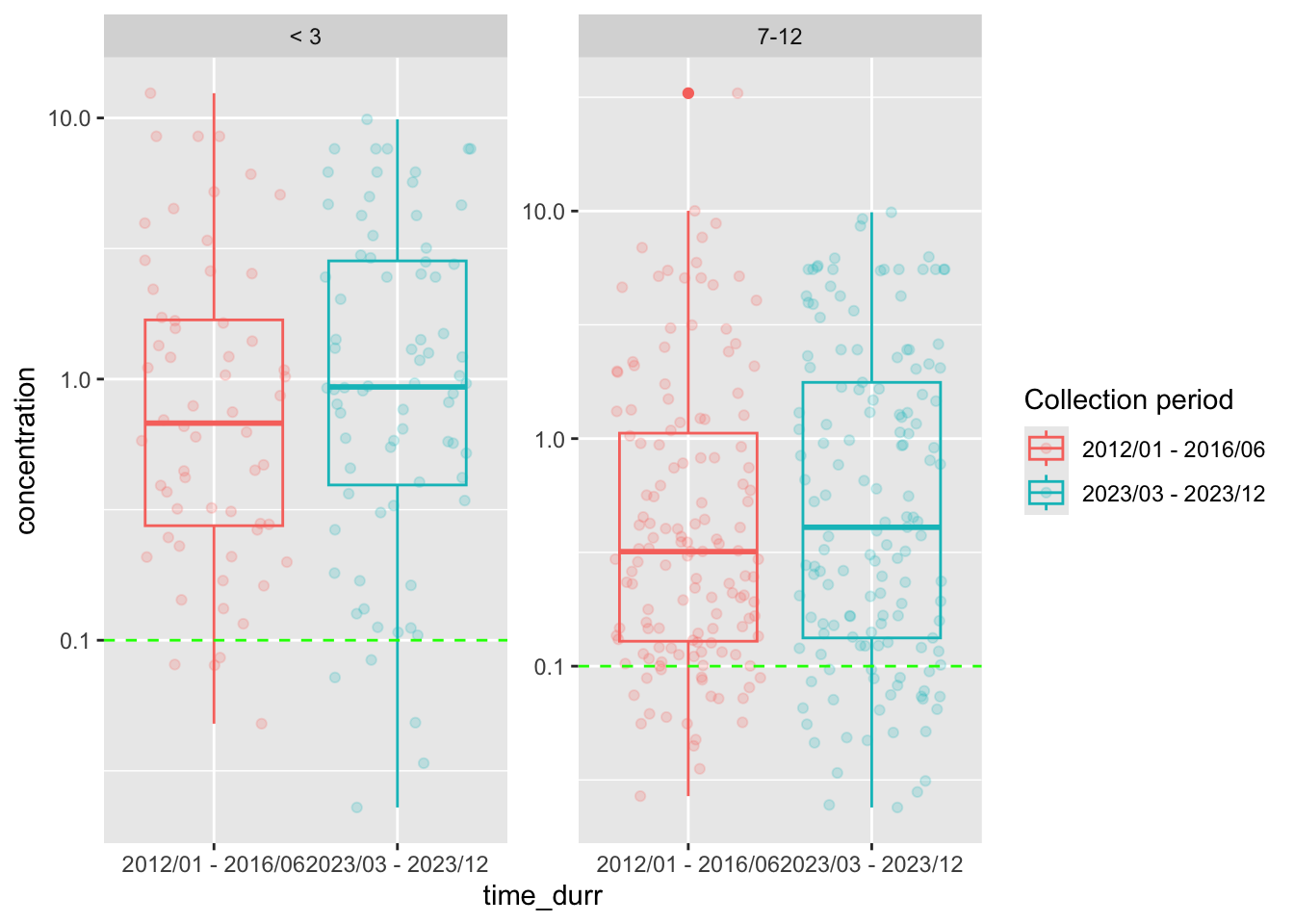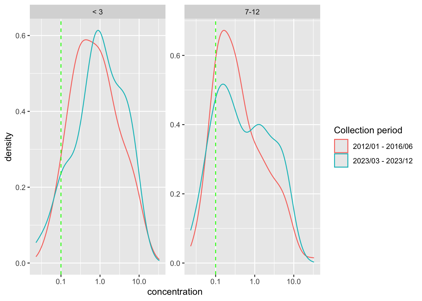 However, it may be due to the fact that the sample size for the earlier collection period (using OUCRU samples) is quite small and we don’t have any data for several age groups (3-6