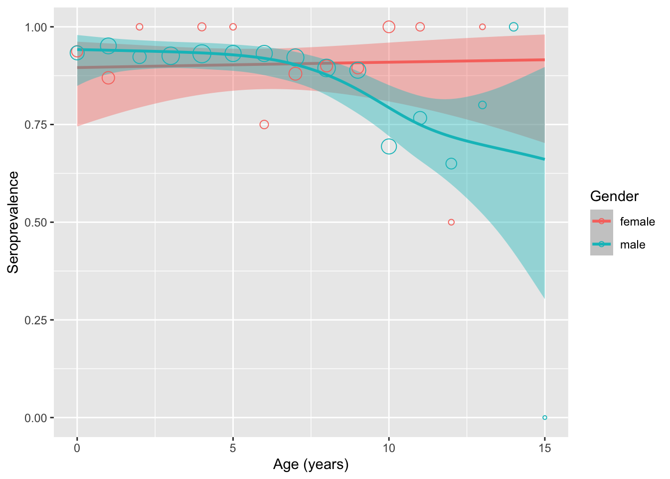 visualize_pred(mod = seroprev_mod_gender, group_var = "gender")